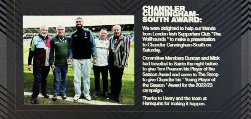 We received a similarly warm welcome at the Stoop, and we give our thanks to Phil Gibson of the QuinsSA and Henry Cox, Harlequins head of supporter and club engagement, who proved very helpful in arranging our event. They even included our presentation in their following matchday programme.