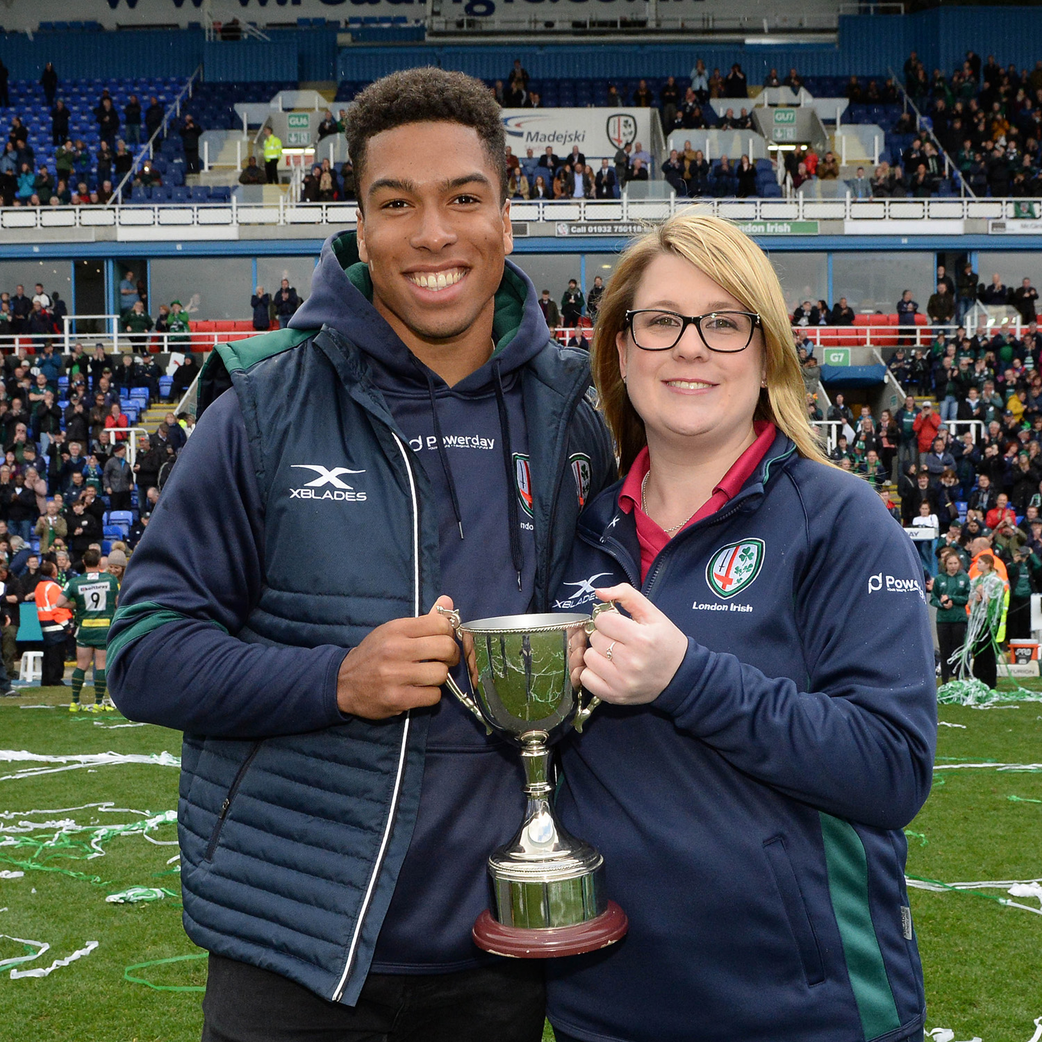 Following our last home match of the 2018-19 season, presentations were made to the London Irish Supporters Club Player of the Season as voted for by the LISC membership, the St Clare’s Travel award to the Young Player of the Season presented by Tony and Maureen Byrne of St Clare’s Travel, and the Robin Clive Memorial Trophy (Academy Player of the Season) as chosen by the Academy coaching staff.