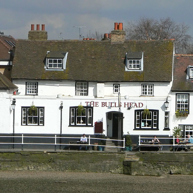The Bulls Head is an 18th century tavern once used by riverboat and barge captains to arrange crews and cargoes. It occupies an attractive waterfront position next to the lattice-girdered Kew Rail Bridge, with views across to Kew Green and Richmond.