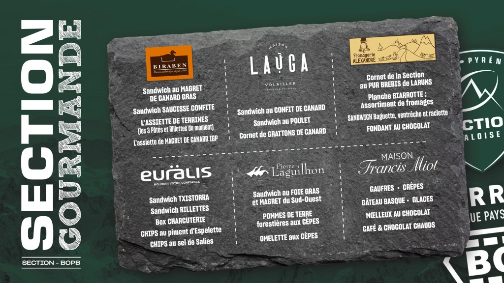 The Section Paloise supporters have recommended the “Section Gourmand” service inside the Hameau, open during stadium hours on match days. You can find this under the north stand (Tribune Nord).